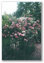 Paul's Himalayan Musk Ramblerrose überwuchert leicht den Pavillion